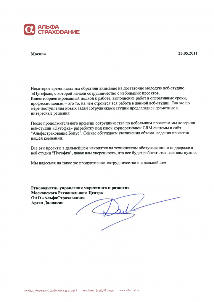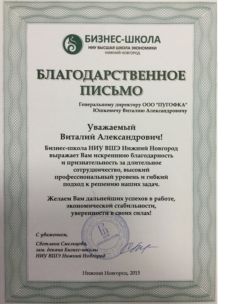 Отзывы и благодарственные письма по итогам выполненных проектов.